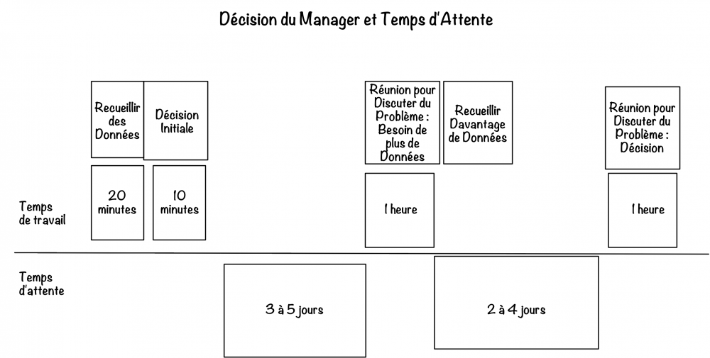 Lorsque le temps d'attente de la prise de décision est supérieur au temps de travail réel, les gens arrêtent de travailler sur cette chose pour passer en mode multitâche. Le rendement diminue.